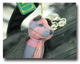 鞄に首をくくっているクマに見えるぞ。
