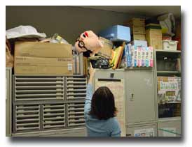 何か、ロッカーの上にあるモノを指差して