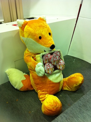 どん兵衛のカップを持っているキツネ。。。