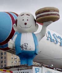 ハンバーガーを持った看板が。